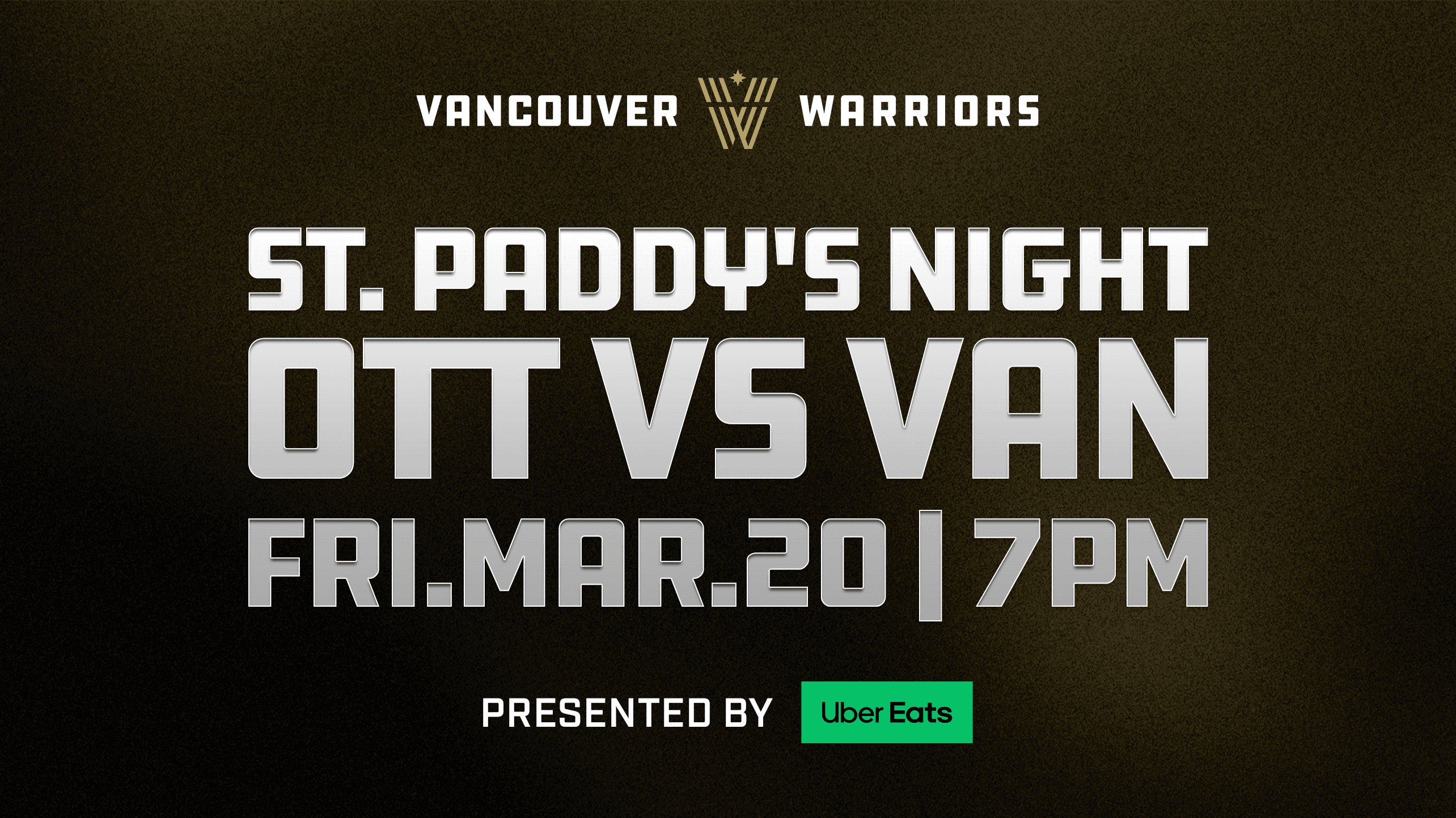Vancouver, BC – It’s time to gear up in your best green attire, Warriors fans! The Vancouver Warriors are hosting their annual St. Paddy’s Day game, presented by Uber Eats, this Friday, March 20, when they host their Canadian rivals, the Ottawa Black Bears, at 7:00pm PT.