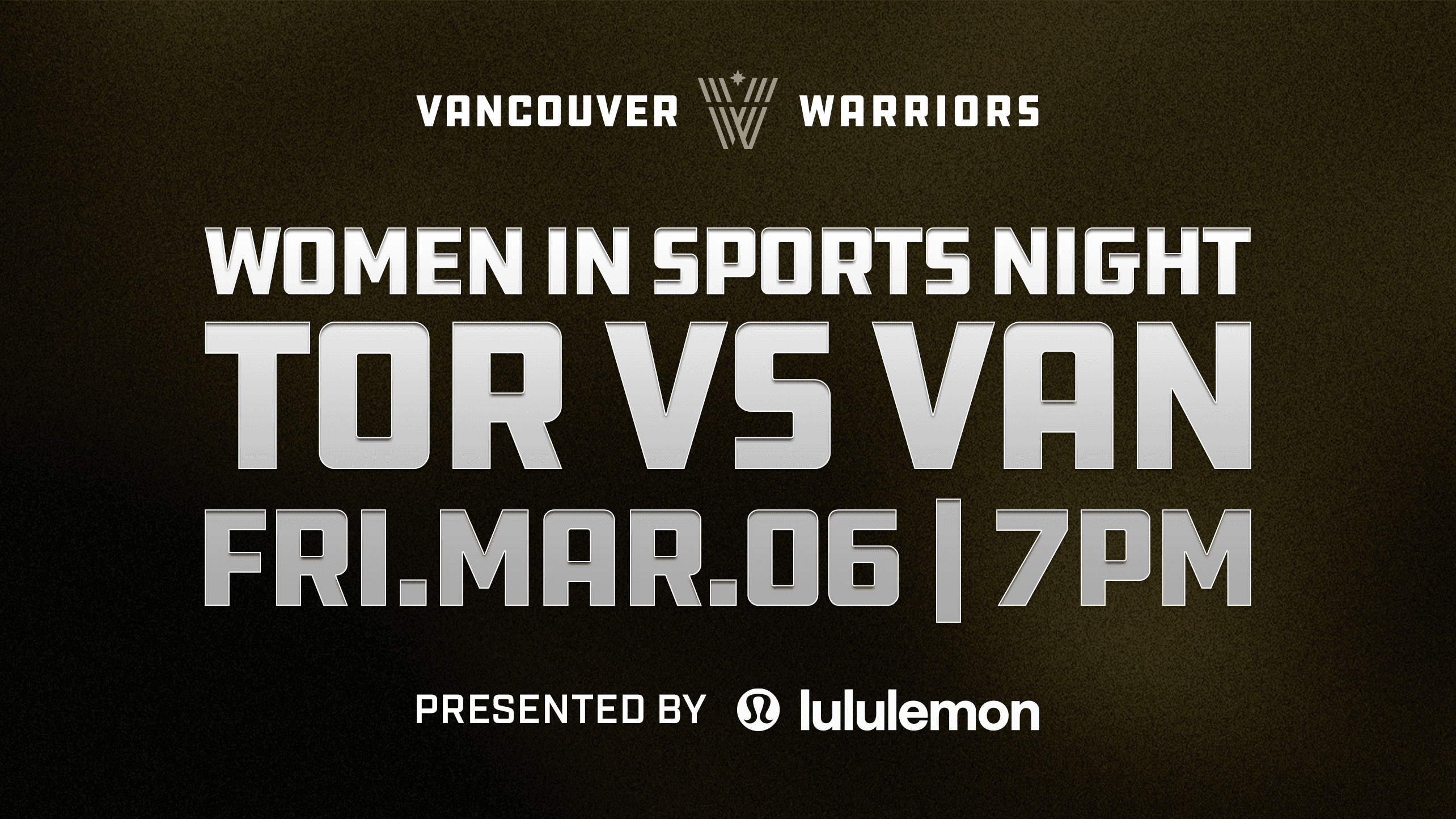 Vancouver, B.C. - The Vancouver Warriors are excited to host the team's first-ever Women in Sports Night, presented by lululemon, on Friday, March 6, when the team takes on the Toronto Rock at Rogers Arena. This night provides the opportunity to celebrate the next generation of female sports leaders and recognize the trailblazers that have come before them.