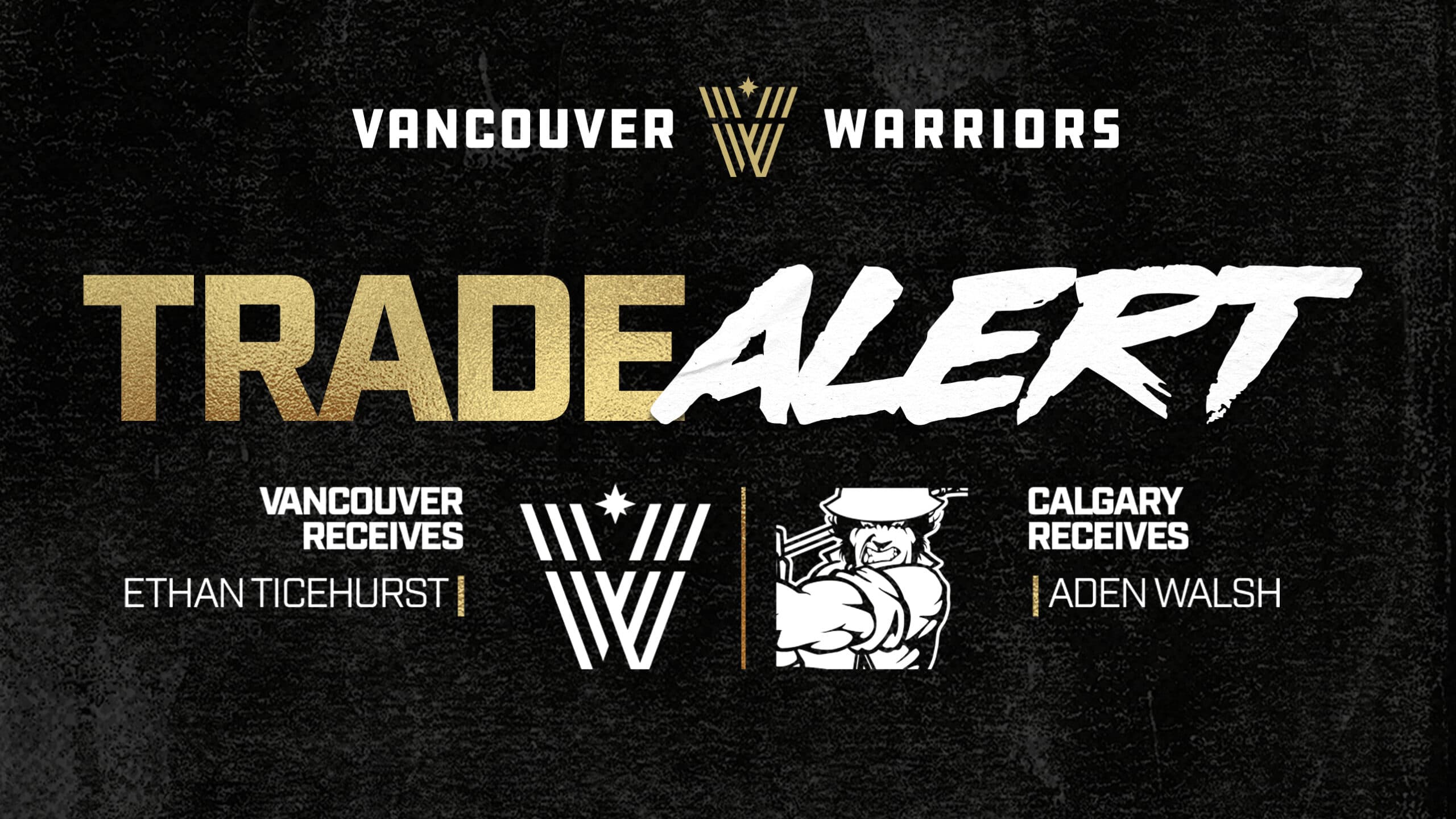 Vancouver, BC – Vancouver Warriors General Manager and Head Coach Curt Malawsky announced today that the club has acquired defenceman Ethan Ticehurst from the Calgary Roughnecks in exchange for goaltender Aden Walsh. This trade completes an earlier transaction between the two teams, originally agreed upon on March 10, in which the Warriors acquired star goaltender Christian Del Bianco and future considerations in exchange for defenceman Brayden Laity, three draft picks, and future considerations.