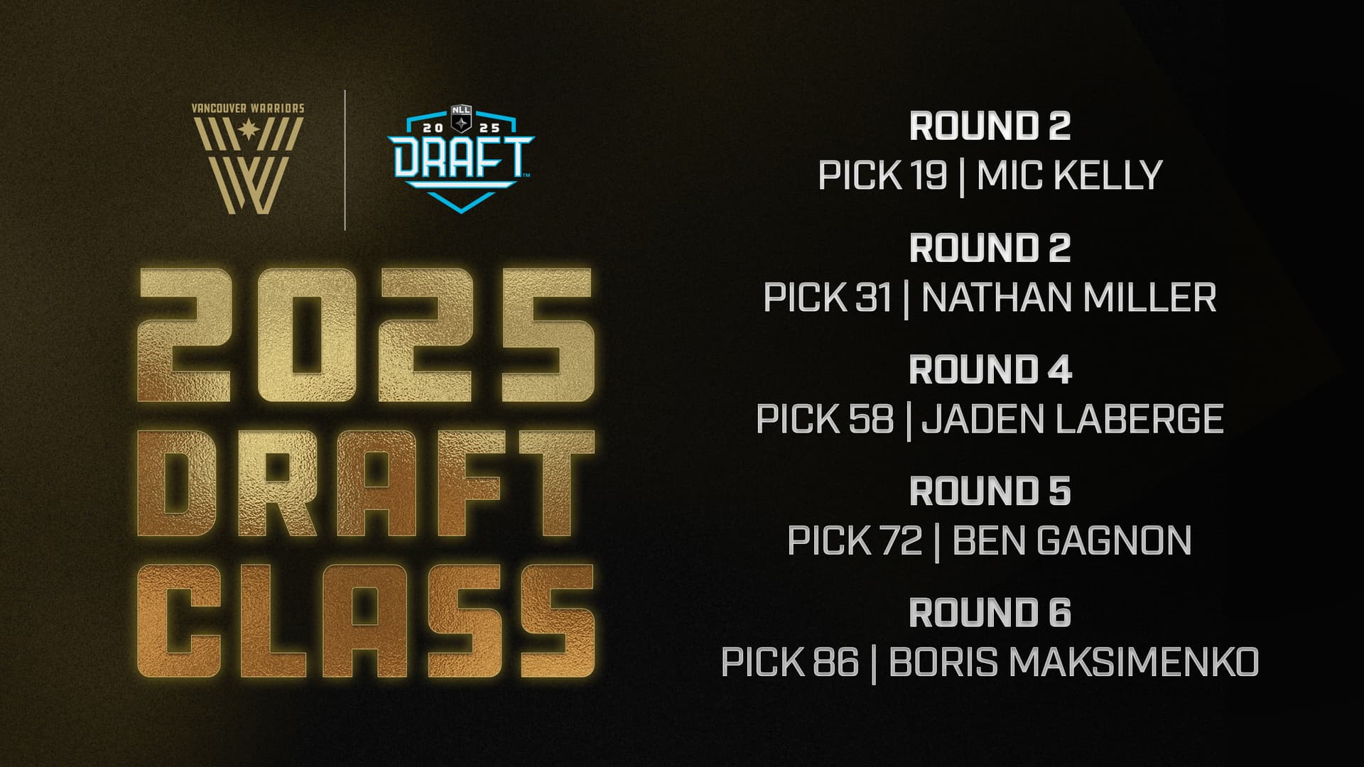 warriors select five players at the 2025 nll draft